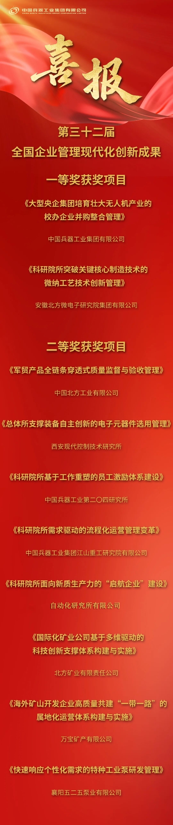兵器工業(yè)集團2025年度管理創(chuàng)新成果獲獎名單發(fā)布2025-11-20