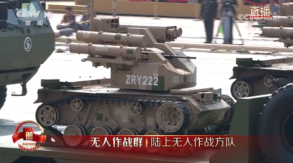 受閱裝備為偵打突擊、掃雷排爆、班組支援等無人戰(zhàn)車。