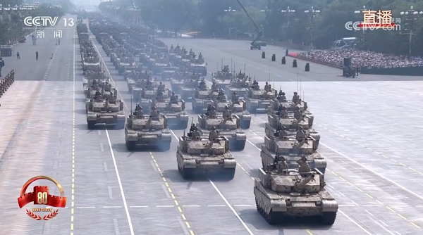 作為陸軍地面突擊力量的新一代裝甲裝備,受閱的99B坦克、100坦克、100支援戰(zhàn)車,呈箭型走在地面裝備方隊(duì)的最前列、頭陣領(lǐng)銜駛過,盡顯機(jī)動(dòng)奪要、攻堅(jiān)突破的強(qiáng)大戰(zhàn)力,是我軍高技術(shù)裝備體系的重要組成部分。